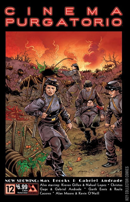 Monsters on the move in The Vast! Jana and the rest of her new team have trained their beasts for the battle ahead - going after Apex! A More Perfect Union sees the true medicinal value of the insect discovered while in Code Pru the ghost of her parents are tormenting Pru. Modded gears up for Chainsaw Reggae Rhythm Action while Alan Moore and Kevin O'Neill weave a tale in the tapestry of cinematic history. The finest anthology in history continues. Join a master class of sequential artisans as they spin stories to terrify and delight. Now showing: Cinema Purgatorio by Alan Moore and Kevin O'Neill, A More Perfect Union by Max Brooks and Gabriel Andrade, Code Pru by Garth Ennis and Raulo Caceres, Modded by Kieron Gillen and Nahuel Lopez, and The Vast by Christos Gage and Gabriel Andrade. Each story has its own cover by the series artist and there is also an Ancient Tome Premium edition limited to 1000 copies.