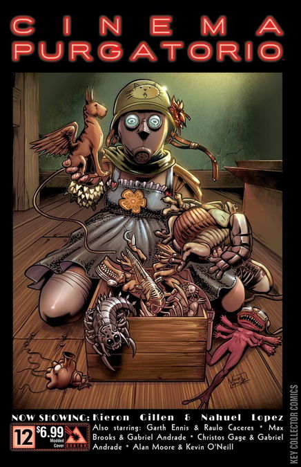 Monsters on the move in The Vast! Jana and the rest of her new team have trained their beasts for the battle ahead - going after Apex! A More Perfect Union sees the true medicinal value of the insect discovered while in Code Pru the ghost of her parents are tormenting Pru. Modded gears up for Chainsaw Reggae Rhythm Action while Alan Moore and Kevin O'Neill weave a tale in the tapestry of cinematic history. The finest anthology in history continues. Join a master class of sequential artisans as they spin stories to terrify and delight. Now showing: Cinema Purgatorio by Alan Moore and Kevin O'Neill, A More Perfect Union by Max Brooks and Gabriel Andrade, Code Pru by Garth Ennis and Raulo Caceres, Modded by Kieron Gillen and Nahuel Lopez, and The Vast by Christos Gage and Gabriel Andrade. Each story has its own cover by the series artist and there is also an Ancient Tome Premium edition limited to 1000 copies.
