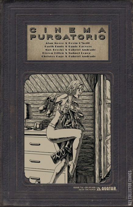 Join a master class of sequential artisans as they spin stories to terrify and delight in the finest anthology in comics. Now showing: Cinema Purgatorio by Alan Moore and Kevin O'Neill, A More Perfect Union by Max Brooks and Gabriel Andrade, Code Pru by Garth Ennis and Raulo Caceres, Modded by Kieron Gillen and Nahuel Lopez, and The Vast by Christos Gage and Gabriel Andrade. Each story has its own cover by the series artist and there is also an Ancient Tome Premium edition limited to 1000 copies.