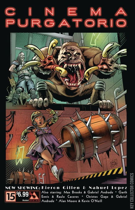 Join a master class of sequential artisans as they spin stories to terrify and delight in the finest anthology in comics. Now showing: Cinema Purgatorio by Alan Moore and Kevin O'Neill, A More Perfect Union by Max Brooks and Gabriel Andrade, Code Pru by Garth Ennis and Raulo Caceres, Modded by Kieron Gillen and Nahuel Lopez, and The Vast by Christos Gage and Gabriel Andrade. Each story has its own cover by the series artist and there is also an Ancient Tome Premium edition limited to 1000 copies.