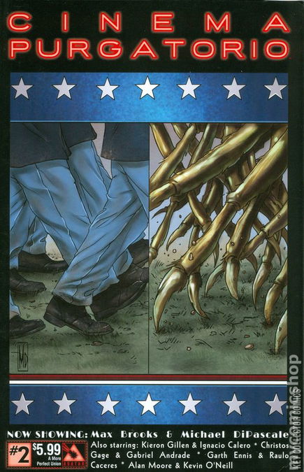 Welcome once again to the theatre of the macabre! Alan Moore and Kevin O’Neill are your hosts as the finest creators in all of comics join us in an anthology to end all anthologies. Cinema Purgatorio is the ongoing monthly series which brings together the powerhouse creators to tell stories that only Avatar Press could. These tales claw into your brain and nest there as you attempt to recover from the horrors you’ve witnessed. Illustrated in stark moody black & white, every page of this series is filled with visions from the minds of your favorite creators. Every issue is perfect-bound, with no ads, and all of the works are very long-form, there are no collections planned before 2018. Jump in now and embrace the new future of comics. The one of which Alan Moore has always dreamed. It’s here, now. Hiding in the dark corner. Welcome to Cinema Purgatorio. Now playing: Cinema Purgatorio – Alan Moore and Kevin O’Neill take a trip through the dark recesses of cinema, the people behind it, the damage it has done, and the story of one woman forced to bare her soul, one short film at a time. Every issue and every story is radically different yet all weaved into one tapestry of breathtaking complexity as only Alan Moore could do. A More Perfect Union – Max Brooks and Michael DiPascale bring Max’s heavily-researched and period authentic story of the Civil War to life. But this time, the South has been invaded by Giant Insects. Code Pru – Garth Ennis and Raulo Caceres continue the night shift FDNY paramedic Pru as she tries to grasp the scope of her job. Like how to offer Frankenstein’s monster medical assistance. Modded – Kieron Gillen and Ignacio Calero serve up a future where monsters are pitted against each other, with a goal of catching them all? This issue – Bloody Susan and Mr Boom have to show Fringe the way to get a new daemon! The Vast – Christos Gage and Gabriel Andrade bring a new kind of giant monster story to life! Apex is not only seemingly impossible to kill, but he leaves a trail of mutation and new monsters in his wake! Each story has its own cover by the series artist and there is also an Ancient Tome Premium edition limited to 1000 copies. Now please take your seat, the finest comics in the world are about to begin.