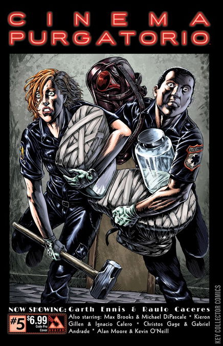 They've taken your ticket and ushered you to a seat. You know something is wrong here. You can feel it in the very fabric of the dingy and smoky theatre you sit in. It's an almost palpable dread you feel as the lights go down and the first reel begins to play... This issue continues Cinema Purgatorio by Alan Moore and Kevin O'Neill, A More Perfect Union by Max Brooks and Michael DiPascale, Code Pru by Garth Ennis and Raulo Caceres, Modded by Kieron Gillen and Ignacio Calero, and The Vast by Christos Gage and Gabriel Andrade. Each story has its own cover by the series artist and there is also an Ancient Tome Premium edition limited to 1000 copies.