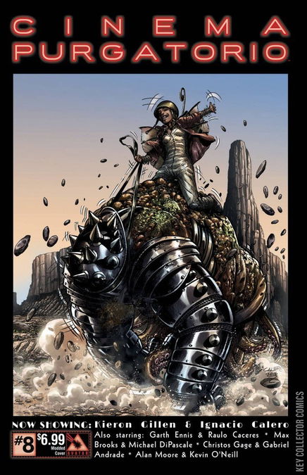 A deep seeded dread spreads over you as you sit in the otherworldly movie theatre. The smell of burnt popcorn is tinged with something else, something coppery... blood? As the first film starts to dance across the screen you hear a strangled choke from behind you. What have you gotten yourself into? This is the theatre of the surreal from the imagination of the one and only Alan Moore! Prepare yourself for twisted tales from the masters of the art form. Now showing: Cinema Purgatorio by Alan Moore and Kevin O'Neill, A More Perfect Union by Max Brooks and Michael DiPascale, Code Pru by Garth Ennis and Raulo Caceres, Modded by Kieron Gillen and Ignacio Calero, and The Vast by Christos Gage and Gabriel Andrade. Each story has its own cover by the series artist and there is also an Ancient Tome Premium edition limited to 1000 copies.