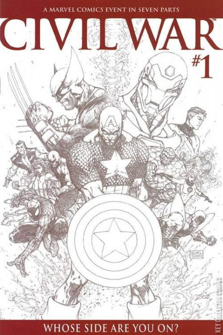 Civil War Part One of Seven THE LANDSCAPE OF THE MARVEL U IS CHANGING AND IT'S TIME TO DECIDE: WHOSE SIDE ARE YOU ON? A conflict has been brewing in the Marvel Universe for over a year, threatening to pit friend against friend, brother against brother -- and all it will take is a single misstep to cost thousands their lives and ignite the fuse! As the war claims its first victims, no one is safe as teams, friendships, and families begin to fall apart. Civil War, a Marvel Comics event in seven parts, stars Spider-Man, the New Avengers, the Fantastic Four, the X-Men and the entirety of the Marvel pantheon! Civil War - the cross-over that rewrites the rules - begins here in this double-sized first issue!
