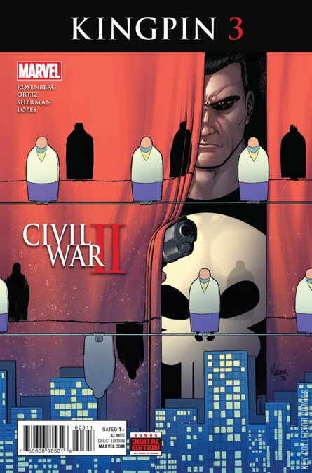 RED IN TOOTH AND CLAW Wilson Fisk has reason to believe that one of his own men is staging a coup -- and killing those who won't surrender their loyalty. But mutiny becomes the least of Fisk's worries when the Punisher launches an attack on the Kingpin's safe house. Can the Fisk keep his business afloat with his cronies dropping like flies, and Frank Castle gunning for him, or is this finally the end of the reign of the KINGPIN? CIVIL WAR II TIE-IN