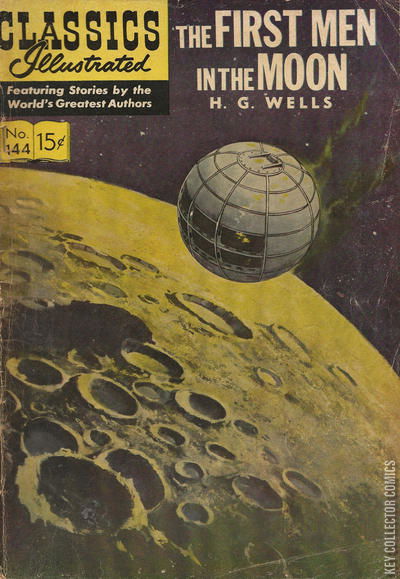 The First Men in the Moon by H. G. Wells The story of a journey to the moon undertaken by the two protagonists, a businessman narrator, Mr. Bedford, and an eccentric scientist, Mr. Cavor. Bedford and Cavor discover that the moon is inhabited by a sophisticated extraterrestrial civilization of insect-like creatures they call "Selenites". HRN #143