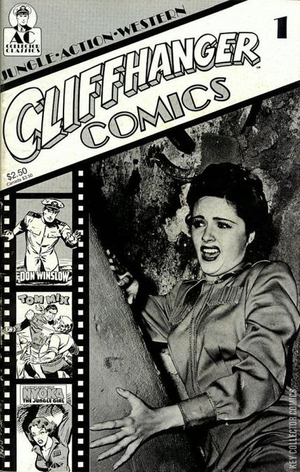 Celebrating the great action serials of the 1940′s Starts off with a great photo cover of Kay Aldridge as Nyoka, with not one but 2 chapters of the Nyoka comic-book serial, “The Perils of Conquest”!! Then, it’s Don Winslow (as illustrated by Carl Pfeuffer and John Jordan) in Chapter One of “Terror on the Tundras”, Lastly, Tom Mix in “The Promise”, also by Pfeuffer & Jordan. All stories have their conclusions in Cliffhanger Comics #2. -- black & white--