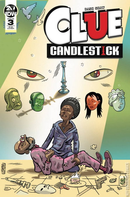 The Boddy Mansion is piled in bodies. Still, the candlestick lurks, and may illuminate the unseen killer... or last victim. In the climactic issue of this whodunit, we finally see who'd done it! Cartoonist auteur Dash Shaw takes his last turn in the puzzling, quirky and colorful world of Clue! From the creative mind that brought you the animated movie, My Entire High School Sinking Into the Sea! Visionary creator Dash Shaw re-imagines the world of Clue in this suspense-filled murder mystery! Each extra-length issue also features playable Clue cards based on the comic!