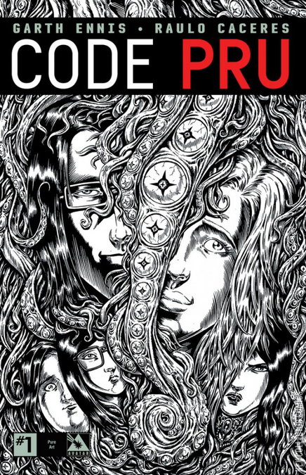 Garth Ennis and Raulo Caceres bring you a black humor horror book unlike anything you've read! Pru wanted nothing more than to join the FDNY and help people as a paramedic. However, that was not to be, as she gets assigned to a special unit that tends to the monsters that live in modern day New York. Vampires, zombies, ghouls and all the creepy things that live around us in he shadows. But no one told her that was her assignment. Learning on-the-job is much more challenging with the supernatural! This series is a lead-in to the ongoing monthly Code Pru stories running in an anthology to be announced shortly! Raulo Caceres' art never looked better than in the luscious black and white of this series. Available with Regular, Wraparound, Movie Poster, Nightlife, and a special Pure Art Incentive cover, all by series artist Raulo Caceres.