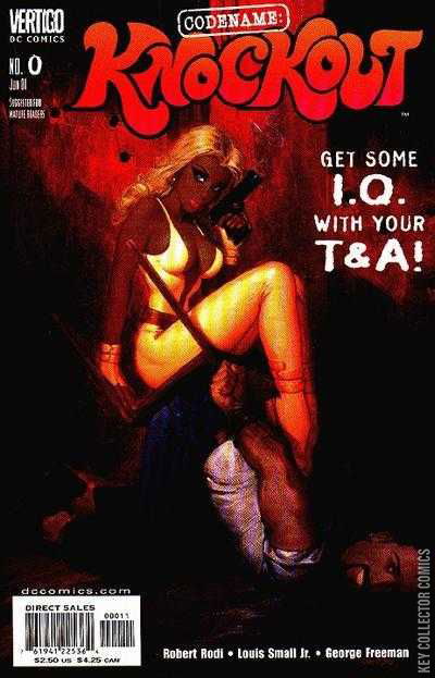 VERTIGO's sexy spy thriller satire debuts with a special teaser #0 issue! Angela St. Grace and her sidekick Go-Go Fiasco become embroiled in their very first case in the lead story. Plus, a behind-the-scenes look at early design sketches by Louis Small, Jr. and commentary on the genesis of CODENAME: KNOCKOUT by Robert Rodi.