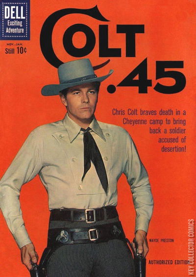 Home / Dell / Colt .45 / Colt .45 #7 Dell Released September 1960 Colt .45 #7 Add to Collection Want It Synopsis No synopsis available. Add to Collection Buy it on eBay Buy on eBay Low $5 Mid $18 High $60 Variants UK Edition Synopsis No synopsis available. Details Series Colt .45 Cover Date September 1960 Pages 36 UPC N/A Cover Price $0.10 Final Orders Cutoff N/A Creators No creators listed. Price Guide Log in or subscribe to access detailed graded price information and market insights. Log In Subscribe