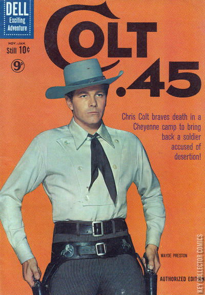 Home / Dell / Colt .45 / Colt .45 #7 Dell Released January 1960 Colt .45 #7 Add to Collection Want It Synopsis No synopsis available. Add to Collection Buy it on eBay Buy on eBay Low $5 Mid $18 High $60 Synopsis No synopsis available. Details Series Colt .45 Cover Date January 1960 Pages 36 UPC N/A Cover Price $0.10 Final Orders Cutoff N/A Creators No creators listed. Price Guide Log in or subscribe to access detailed graded price information and market insights. Log In Subscribe