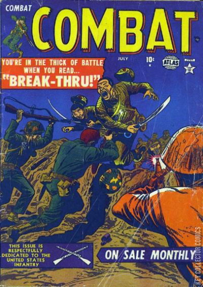 Home / Atlas / Combat / Combat #2 Atlas Released July 1952 Combat #2 Add to Collection Want It Synopsis No synopsis available. Add to Collection Buy it on eBay Buy on eBay Low $75 Mid $220 High $730 Synopsis No synopsis available. Details Series Combat Cover Date July 1952 Pages N/A UPC N/A Cover Price N/A Final Orders Cutoff N/A Creators No creators listed. Price Guide Log in or subscribe to access detailed graded price information and market insights. Log In Subscribe