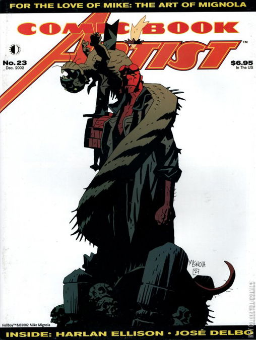 From Hellboy and back! In this issue, its the magic of Mike Mignola with an exhaustive interview (with the talk ranging from his early Marvel days to current design work on theĀ upcoming Hellboy movie), a huge gallery section (featuring lots of never-before-seen art), and a comprehensive checklist, all behind a new Mignola cover spotlighting his greatest creation, Hellboy! On the flip, Jill Thompson takes us from Sandman to Scary Godmother with a career-spanning conversation, plus tons of art and even a portfolio of the artist-as-model with studies of Jill by Alex Ross, Steve Rude, P. Craig Russell, and more! In addition, you get the dirt on versatile inker Tom Palmer in his studio and also have a talk with legendary science-fiction author Harlan Ellison on his various forays into comics!