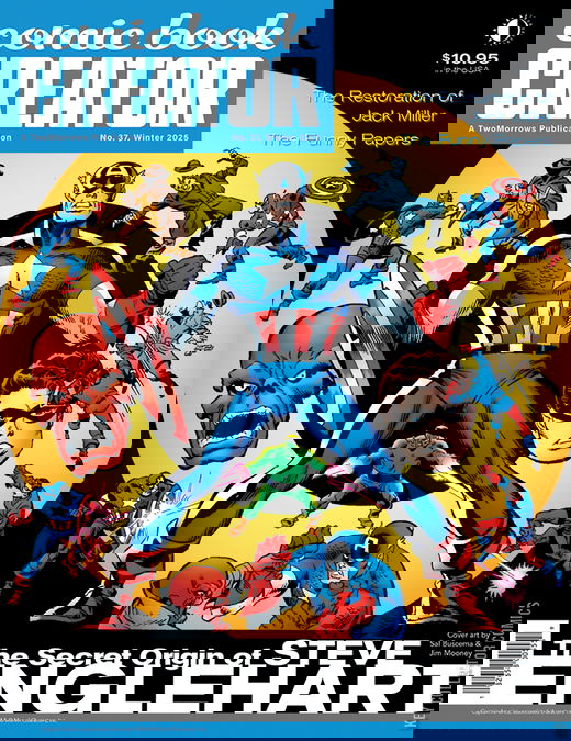 Steve Englehart is spotlighted in CBC #37 in a comprehensive, career-spanning interview, with emphasis on his glorious ’70s work as top comics writer. Plus, with the help of former DC Comics' romance editor Barbara Friedlander, we redeem the once sullied name of her mentor, the late, great DC editor Jack Miller, whose career was bought to an ignominious end by company management while he suffered a fatal malady. Also, Dan Didio shares about his entry as DC exec to become the company’s co-publisher in the second portion of Greg Biga's interview with the writer extraordinaire. We also conclude our 100th birthday celebration for Arnold Drake with the final portion of an amazing conversation with the brilliant late scribe, examining his creation of The Doom Patrol and work on The X-Men! We also finally present our long-promised look at the 1970s underground comix oddity, The Funny Pages, with help from the comic tabloid's editor, Cloudy with a Chance of Meatballs creator Ron Barrett! Also included, natch, are our regular departments such as Hembeck's latest Dateline strip.