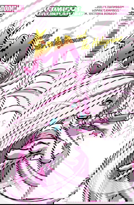 Celebrate the glitz and the glam and bask in the sparkle and shine of two iconic series—JEM & THE HOLOGRAMS and MY LITTLE PONY—in this exclusive Comics Giveaway Day™ special flipbook! Get ready for an outrageous new series of JEM & THE HOLOGRAMS by revisiting its popular comics debut to be collected in four compact comics starting Fall 2026! Then head to Equestria to relive the magic of MY LITTLE PONY before the adventures continue in a forthcoming series! Perfect for devoted fans and newcomers alike, you won’t want to miss the debut duet of this dazzling duo!