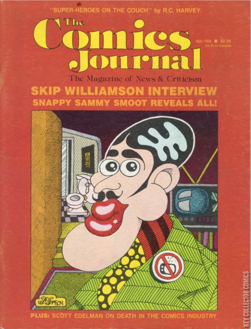 Newswatch Shooter Speaks out on Kirby Art. Marvel demands end to Megaton Man parodies. Crisis on Infinite Earths deathless. John Byrne's revamped Superman generates media attention. Will Jungkuntz dead at 30. John Byrne off Hulk. Letters Correspondence from Ernie Colon, and others. Critique Carter Shultz on Savage Tales . R. C. Harvey on Women and the Comics . Russel Friend on Blood of the Innocent. Interviews Comics and Catholics - Mark Burbey interviews Justin Green The Strange World of Snappy Sammy Smoot - "Grass" Green interviews Skip Williamson. Features Super-Heroes on the Couch - A Psychoanalytic Speculation by R. C. Harvey Columns Opening Shots - "Picasso was a cartoonist" C.C. Beck On the humor of artists. Viewpoint - "Comic-Book Books" Mike Barrier on books about comics. Ethics - "Death be not Bland" Scott Edelman on hypocritical obituaries. Executive Forum - "Hard-Working People" Steve Shane's on promoting comics.