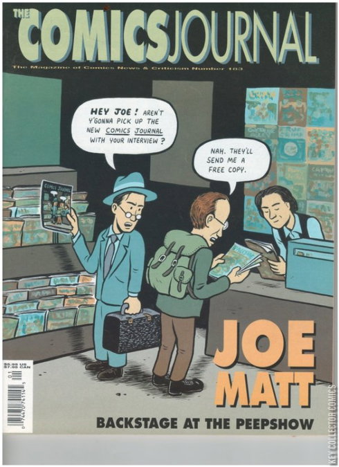 Blood & Thunder Readers (including R. Crumb) respond to last fall's coverage of the underground great. Columns Viva la Comix & The Hit List Newswatch Paul Mavrides wins his appeal to the California BOE. Plus Lee/Liefeld back in bed with Marvel. Diamond closes warehouses, ad Marvelution hits the "low sales and fire a lo of people " stage Objective Opinions Minimalism - Robert Boyd checks on current offerings from some mini veterans. Firing Line - What's on the sands, briefly discussed. This months reviews include The Narrative Corpse by Larry Reid, Hooked on Comics by Dan Sutherland, and Vamps: Hollywood and Vein #1 by Kent Worcester. Comics Library - Long-form comics criticism the Journal way: Rich Kreiner makes sinus of Dark Horse Presents 100, Robert Sanford goes toe-to-toe with From Inside, Gene Kannenbers digests Dark Knight: The New Comics in Context, and Bill Schelly takes a stroll down ropsie Avenue: The Neighborhood. Interviews Joe Matt - The talent that took autobiographical comics to a new and exciting level sits dow with the Journal's Chris Brayshaw for his definitive interview to date. Don Rosa - His generation's "good duck artist' and an internationally-lauded cartoonist. Rosa talks frankly about his own work and the culture of comics in the first half of a two-part interview. Features A Few Words About Joe Matt - Fellow cartoonist and close friend Seth sheds some light on the workings of our front cover feature. Whatever Happened to Alan Moore? - Nick Hasted asks the question and answers it - shedding light on the state of a talented creator and an entire industry. The Snobbies - The Comic Hournal's first annual end-of-the-year awards! Free Stuff! Fill out a ballot today. Art & Craft Hey, Kids! Comics! - Mr. Herge, Mr Kirby: Mr. Kirby, Mr. Herge Comicopia - R.C. Harvey reports on 1995's Ohio Cartoon Arts Conference. Sketchbook - The much-load feature returns with 1996's first breakout talent: Dave Cooper of Suckle.