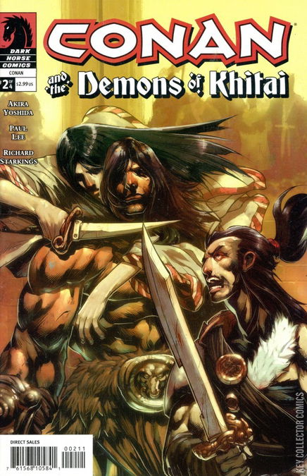 Having traveled to the exotic land of Khitai, Conan learns that his mysterious invitation came from Shinzen, the greatest warrior in the Far East, who has gone mad and stolen the most prized relic in Khitai-the obsidian sword Hakkiba, the Blade of Balance. Despite warnings that Shinzen is an insurmountable opponent, Conan sets out for the haunted monastery where Shinzen now resides, determined to confront this mad warrior. Uber-artist Pat Lee provides the cover.