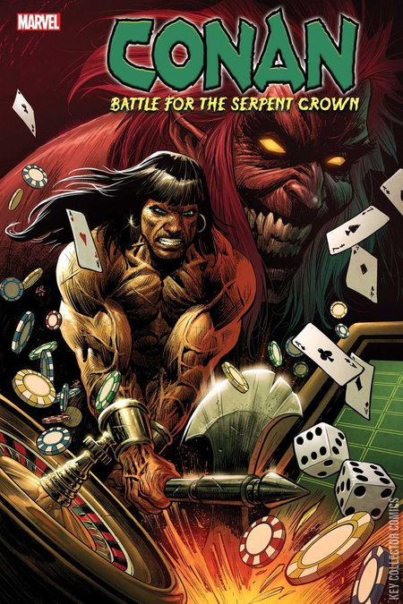 A deadly quest and a daring heist...in the age of Marvels! CONAN wanders the desert, and as he reaches the city, no Stygian temple nor Vendyhan fortress greets him.  No, something far stranger: the lights of fabulous Las Vegas!  Conan is far from home, and it's time for him to tread the thrones of the Marvel Universe under his sandaled feet! The City of Sin is just the beginning for Conan's solo jaunt by Eisner award-winner Saladin Ahmed ( BLACK BOLT , MILES MORALES: SPIDER-MAN ) and Luke Ross ( STAR WARS: ALLEGIANCE , SAVAGE SWORD OF CONAN ), as the barbarian finds himself on a quest for a relic that predates even his Hyborian Age: the Serpent Crown of Atlantis! But will his battle for this crown earn Conan his own kingdom, or doom him to a nefarious trap set forth by MEPHISTO? Featuring a wide array of Marvel heroes and villains, this is an adventure you can't afford to miss!