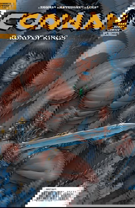 The pirate world is about to get 100 percent more savage as Conan and his crew of brigands ravage the seas in search of treasure and glory. But when the beautiful Olivia appears aboard one of the captured ships and starts speaking of prophetic dreams and king's fortunes, Conan and his crew head in another direction--one that leads straight to the ROAD OF KINGS! * Joined by artists Mike Hawthorne and John Lucas, and master scribe Roy Thomas returns to the pages of Conan in this first issue of a new era in the adventures of Conan! * 100% Adventure from Dark Horse Comics!