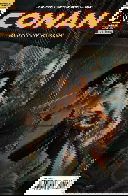 The pirate world is about to get 100 percent more savage as Conan and his crew of brigands ravage the seas in search of treasure and glory. But when the beautiful Olivia appears aboard one of the captured ships and starts speaking of prophetic dreams and king's fortunes, Conan and his crew head in another direction--one that leads straight to the ROAD OF KINGS! * Joined by artists Mike Hawthorne and John Lucas, and master scribe Roy Thomas returns to the pages of Conan in this first issue of a new era in the adventures of Conan! * 100% Adventure from Dark Horse Comics!