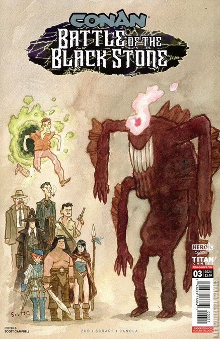 CONAN OF CIMMERIA is haunted by shadows, living nightmares connected to a mysterious eye symbol etched in BLACK STONE. An unspeakable evil looms over the Hyborian Age and every age connected to it... and it will take more than a lone barbarian to stop its relentless march upon time, space, and sanity. BATTLE OF THE BLACK STONE, an epic new CONAN EVENT from Heroic Signatures and Titan Comics, begins HERE, from Jim Zub (Conan the Barbarian, Dungeons & Dragons) and artist Jonas Scharf (Dark X-Men, Basilisk)!
