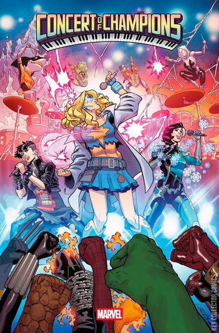 It's the first ever CONCERT OF CHAMPIONS, a festival bringing together the Marvel Universe's biggest and brightest musical stars! Headliners include DAZZLER, spinning out from her recent hit-making limited series, K-pop sensation LUNA SNOW, interdimensional rockstar LILA CHENEY and many more. And there will also be some surprising fans in attendance - including the sensational SPIDER-GWEN! But who - or what? - is the mysterious new metal band DEEP VOID - and what are their sinister intentions?! Musical mayhem is in store in the mighty Marvel manner! PLUS, A TOP-SECRET DEBUT THAT YOU WON'T EVEN REALIZE IS HAPPENING - YET!