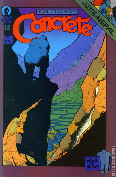 Concrete announces that he has received permission to go on a trek in Nepal--to the Everest region. The condition being that he carry the cable and assist in the construction of a new suspension bridge along the way. The journey is a long one and filled with difficulties. When they finally arrive at the northernmost point neat the Everest base camp, Concrete reveals to Larry and Maureen that he plans to climb Mt. Everest--solo. You won't want to miss this cliff-hanging adventure that continues into issue #9.