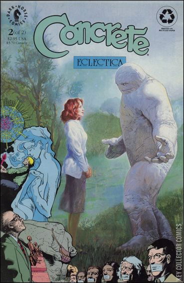 This issue features a whimsical story, "I Strive for Realism," in which Concrete meets the creator of his universe, and is temporarily transformed back into plain, human Ronald Lithgow. Also in this issue, a new "Sky of Heads" story, more "100 Horrors," and a few more of Paul Chadwick's wonderful watercolor paintings.