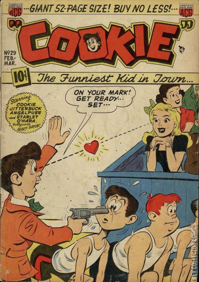 Home / ACG / Cookie / Cookie #29 ACG Released March 1951 Cookie #29 Add to Collection Want It Synopsis No synopsis available. Add to Collection Buy it on eBay Buy on eBay Low $25 Mid $75 High $250 Synopsis No synopsis available. Details Series Cookie Cover Date March 1951 Pages 52 UPC N/A Cover Price $0.10 Final Orders Cutoff N/A Creators No creators listed. Price Guide Log in or subscribe to access detailed graded price information and market insights. Log In Subscribe