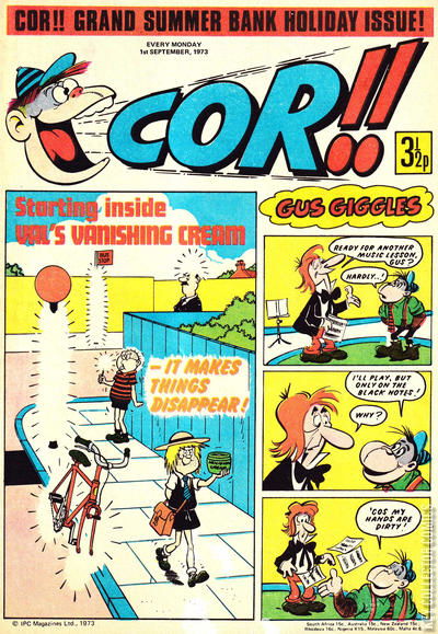 Home / IPC Magazines / Cor!! / Cor!! #1 September 1973 170 IPC Magazines Released September 1973 Cor!! #1 September 1973 170 Add to Collection Want It Synopsis No synopsis available. Issue 5 of 207 Add to Collection Buy it on eBay Buy on eBay Low $2 Mid $10 High $30 Synopsis No synopsis available. Details Series Cor!! Cover Date September 1973 Pages 32 UPC N/A Cover Price N/A Final Order Cutoff N/A Creators No creators listed. Price Guide Log in or subscribe to access detailed graded price information and market insights. Log In Subscribe