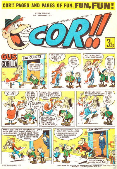 Home / IPC Magazines / Cor!! / Cor!! #11 September 1971 67 IPC Magazines Released September 1971 Cor!! #11 September 1971 67 Add to Collection Want It Synopsis No synopsis available. Issue 72 of 207 Add to Collection Buy it on eBay Buy on eBay Low $2 Mid $10 High $30 Synopsis No synopsis available. Details Series Cor!! Cover Date September 1971 Pages 32 UPC N/A Cover Price N/A Final Order Cutoff N/A Creators No creators listed. Price Guide Log in or subscribe to access detailed graded price information and market insights. Log In Subscribe