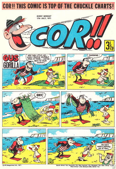 Home / IPC Magazines / Cor!! / Cor!! #17 July 1971 59 IPC Magazines Released July 1971 Cor!! #17 July 1971 59 Add to Collection Want It Synopsis No synopsis available. Issue 114 of 207 Add to Collection Buy it on eBay Buy on eBay Low $2 Mid $10 High $30 Synopsis No synopsis available. Details Series Cor!! Cover Date July 1971 Pages 32 UPC N/A Cover Price N/A Final Order Cutoff N/A Creators No creators listed. Price Guide Log in or subscribe to access detailed graded price information and market insights. Log In Subscribe