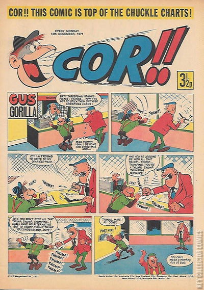 Home / IPC Magazines / Cor!! / Cor!! #18 December 1971 81 IPC Magazines Released December 1971 Cor!! #18 December 1971 81 Add to Collection Want It Synopsis No synopsis available. Issue 119 of 207 Add to Collection Buy it on eBay Buy on eBay Low $2 Mid $10 High $30 Synopsis No synopsis available. Details Series Cor!! Cover Date December 1971 Pages 32 UPC N/A Cover Price N/A Final Order Cutoff N/A Creators No creators listed. Price Guide Log in or subscribe to access detailed graded price information and market insights. Log In Subscribe
