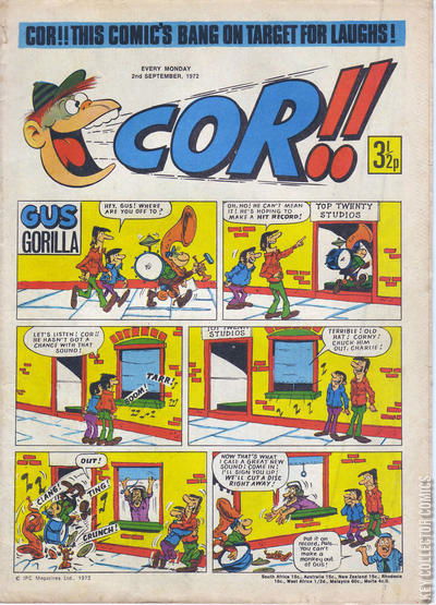 Home / IPC Magazines / Cor!! / Cor!! #2 September 1972 118 IPC Magazines Released September 1972 Cor!! #2 September 1972 118 Add to Collection Want It Synopsis No synopsis available. Add to Collection Buy it on eBay Buy on eBay Low $2 Mid $10 High $30 Synopsis No synopsis available. Details Series Cor!! Cover Date September 1972 Pages 32 UPC N/A Cover Price N/A Final Orders Cutoff N/A Creators No creators listed. Price Guide Log in or subscribe to access detailed graded price information and market insights. Log In Subscribe