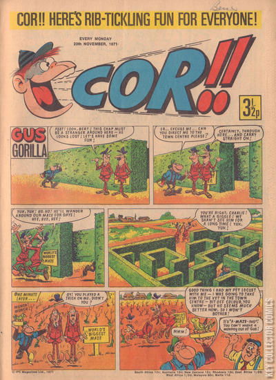 Home / IPC Magazines / Cor!! / Cor!! #20 November 1971 77 IPC Magazines Released November 1971 Cor!! #20 November 1971 77 Add to Collection Want It Synopsis No synopsis available. Add to Collection Buy it on eBay Buy on eBay Low $2 Mid $10 High $30 Synopsis No synopsis available. Details Series Cor!! Cover Date November 1971 Pages 32 UPC N/A Cover Price N/A Final Orders Cutoff N/A Creators No creators listed. Price Guide Log in or subscribe to access detailed graded price information and market insights. Log In Subscribe