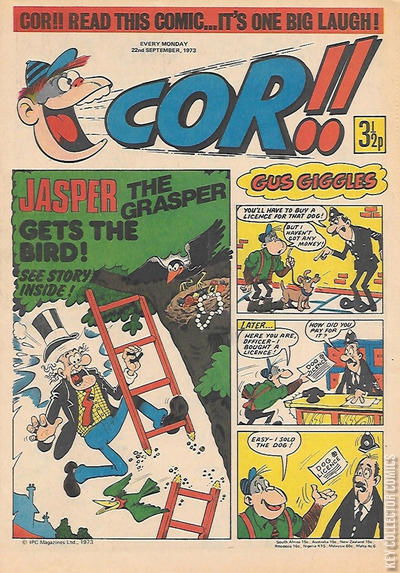 Home / IPC Magazines / Cor!! / Cor!! #22 September 1973 173 IPC Magazines Released September 1973 Cor!! #22 September 1973 173 Add to Collection Want It Synopsis No synopsis available. Issue 148 of 207 Add to Collection Buy it on eBay Buy on eBay Low $2 Mid $10 High $30 Synopsis No synopsis available. Details Series Cor!! Cover Date September 1973 Pages 32 UPC N/A Cover Price N/A Final Order Cutoff N/A Creators No creators listed. Price Guide Log in or subscribe to access detailed graded price information and market insights. Log In Subscribe