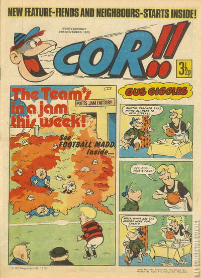 Home / IPC Magazines / Cor!! / Cor!! #24 November 1973 182 IPC Magazines Released November 1973 Cor!! #24 November 1973 182 Add to Collection Want It Synopsis No synopsis available. Issue 161 of 207 Add to Collection Buy it on eBay Buy on eBay Low $2 Mid $10 High $30 Synopsis No synopsis available. Details Series Cor!! Cover Date November 1973 Pages 32 UPC N/A Cover Price N/A Final Order Cutoff N/A Creators No creators listed. Price Guide Log in or subscribe to access detailed graded price information and market insights. Log In Subscribe