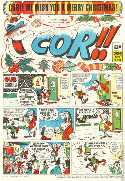Home / IPC Magazines / Cor!! / Cor!! #26 December 1970 30 IPC Magazines Released December 1970 Cor!! #26 December 1970 30 Add to Collection Want It Synopsis No synopsis available. Issue 174 of 207 Add to Collection Buy it on eBay Buy on eBay Low $2 Mid $10 High $30 Synopsis No synopsis available. Details Series Cor!! Cover Date December 1970 Pages 32 UPC N/A Cover Price N/A Final Order Cutoff N/A Creators No creators listed. Price Guide Log in or subscribe to access detailed graded price information and market insights. Log In Subscribe