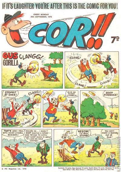 Home / IPC Magazines / Cor!! / Cor!! #26 September 1970 17 IPC Magazines Released September 1970 Cor!! #26 September 1970 17 Add to Collection Want It Synopsis No synopsis available. Add to Collection Buy it on eBay Buy on eBay Low $2 Mid $10 High $30 Synopsis No synopsis available. Details Series Cor!! Cover Date September 1970 Pages 32 UPC N/A Cover Price N/A Final Orders Cutoff N/A Creators No creators listed. Price Guide Log in or subscribe to access detailed graded price information and market insights. Log In Subscribe