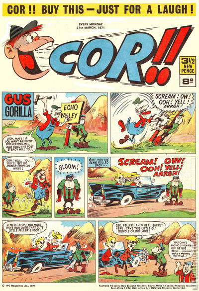 Home / IPC Magazines / Cor!! / Cor!! #27 March 1971 43 IPC Magazines Released March 1971 Cor!! #27 March 1971 43 Add to Collection Want It Synopsis No synopsis available. Issue 185 of 207 Add to Collection Buy it on eBay Buy on eBay Low $2 Mid $10 High $30 Synopsis No synopsis available. Details Series Cor!! Cover Date March 1971 Pages 32 UPC N/A Cover Price N/A Final Order Cutoff N/A Creators No creators listed. Price Guide Log in or subscribe to access detailed graded price information and market insights. Log In Subscribe