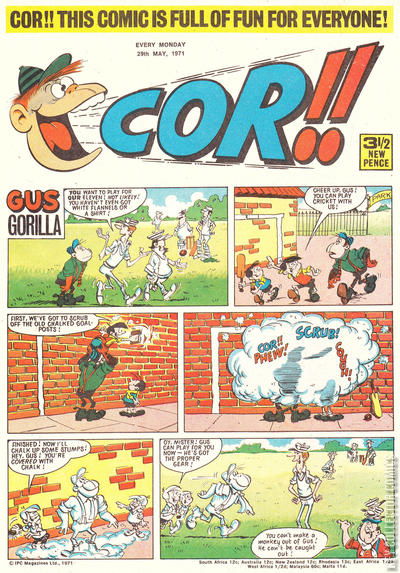 Home / IPC Magazines / Cor!! / Cor!! #29 May 1971 52 IPC Magazines Released May 1971 Cor!! #29 May 1971 52 Add to Collection Want It Synopsis No synopsis available. Issue 196 of 207 Add to Collection Buy it on eBay Buy on eBay Low $2 Mid $10 High $30 Synopsis No synopsis available. Details Series Cor!! Cover Date May 1971 Pages 32 UPC N/A Cover Price N/A Final Order Cutoff N/A Creators No creators listed. Price Guide Log in or subscribe to access detailed graded price information and market insights. Log In Subscribe