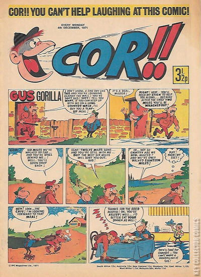 Home / IPC Magazines / Cor!! / Cor!! #4 December 1971 79 IPC Magazines Released December 1971 Cor!! #4 December 1971 79 Add to Collection Want It Synopsis No synopsis available. Issue 25 of 207 Add to Collection Buy it on eBay Buy on eBay Low $2 Mid $10 High $30 Synopsis No synopsis available. Details Series Cor!! Cover Date December 1971 Pages 32 UPC N/A Cover Price N/A Final Order Cutoff N/A Creators No creators listed. Price Guide Log in or subscribe to access detailed graded price information and market insights. Log In Subscribe