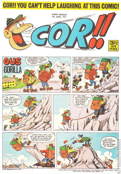 Home / IPC Magazines / Cor!! / Cor!! #5 June 1971 53 IPC Magazines Released June 1971 Cor!! #5 June 1971 53 Add to Collection Want It Synopsis No synopsis available. Issue 35 of 207 Add to Collection Buy it on eBay Buy on eBay Low $2 Mid $10 High $30 Synopsis No synopsis available. Details Series Cor!! Cover Date June 1971 Pages 32 UPC N/A Cover Price N/A Final Order Cutoff N/A Creators No creators listed. Price Guide Log in or subscribe to access detailed graded price information and market insights. Log In Subscribe