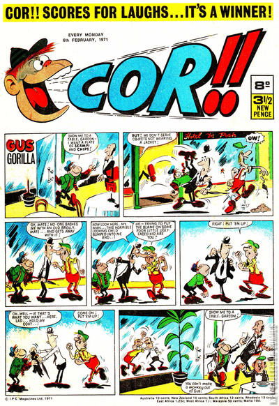 Home / IPC Magazines / Cor!! / Cor!! #6 February 1971 36 IPC Magazines Released February 1971 Cor!! #6 February 1971 36 Add to Collection Want It Synopsis No synopsis available. Issue 39 of 207 Add to Collection Buy it on eBay Buy on eBay Low $2 Mid $10 High $30 Synopsis No synopsis available. Details Series Cor!! Cover Date February 1971 Pages 32 UPC N/A Cover Price N/A Final Order Cutoff N/A Creators No creators listed. Price Guide Log in or subscribe to access detailed graded price information and market insights. Log In Subscribe