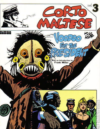 "Voodoo for the President!" Story, art and cover by Hugo Pratt, plus an introduction by Frank Miller. A rare English translation of this classic and influential comic strip from Italy. Corto Maltese escapes from a banana republic with help from a witch doctor; he encounters a WWI deserter from the English army; he battles slavers while searching for a boy in the rainforest; he discovers a spy ring while seeking the Gold of Eldorado. Voodoo for the President; Sweet Dream Lagoon; A Tale of Two Grandfathers; The Angel in the Window to the Orient.