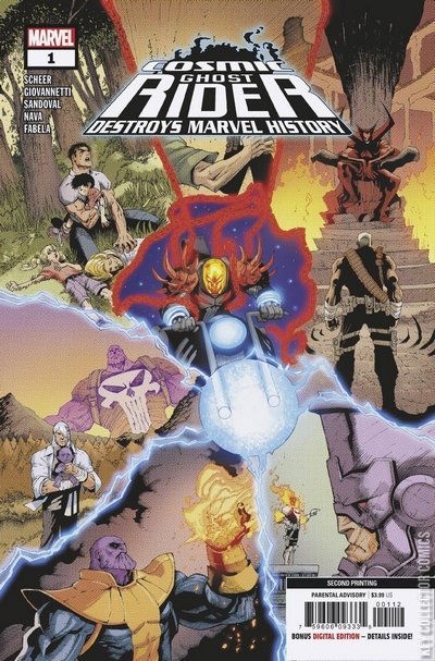 The Cosmic Ghost Rider is stuck in the past, so he might as well have some fun with the origins of the Marvel Universe, right?! After going back in time and trying to kill Thanos as a baby, Frank Castle has sworn off trying to alter history. But when he arrives in Earth’s past at the birth of the Fantastic Four, how can he resist jumping in on the fun?!