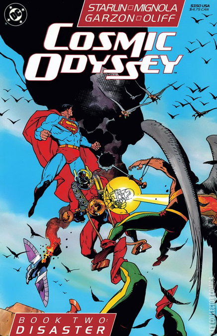 Book 2. Superman and Orion are sent to Thangar and run up against a sky full of angry Hawk people; Batman and Forager are sent to Earth; Lightray and Starfire meet Adam Strange on Rann and try to track down the Equation Bomb; J'Onn and John are sent to Xanshi, and thanks to GL's arrogance, the planet is destroyed by the Anit-Life Bomb. To battle the Anti-Life Equation, Jason Blood becomes The Demon again.