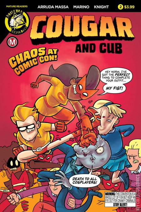 The crime-fighting chemistry has dramatically dipped following Cougar and Cub's unexpected one night stand! With Megaville's supervillains eager to pounce on their vulnerable prey, a trap is set at Megaville Comic Con by Norm and the Regulars. Can our feline fighters fend off this bunch of belligerent bullies? Plus, peer into the past through a sensuous silver age story as Cougar struggles to pry her wayward Cub from the paws of a rodent interloper! Rekindle your romance with our Flashback Backup variant and massage your tender eyes with our Love Is Gross variant.